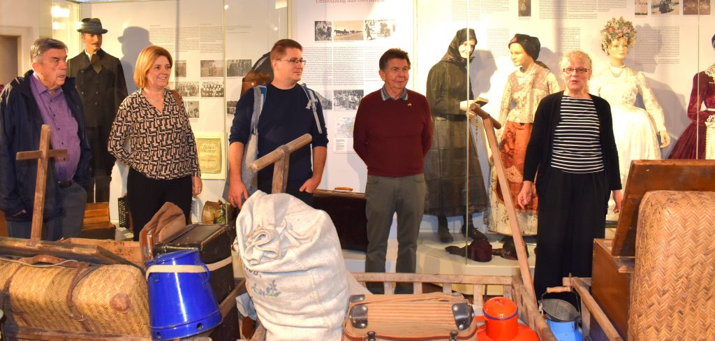 Nach einer Stadtführung mit Dieter Schweitzer vom Heimatpflegeverein besuchte die Gruppe das Stadt- und Heimatmuseum der Ungarndeutschen. Museumsleiterin Dr. Birgit Knolmayer begrüßte die 27 Jugendlichen und ihre vier Begleitpersonen und freute sich über deren großes Interesse an Geschichte, Kultur und Brauchtum. Ein Höhepunkt war das Gespräch mit Zeitzeuge Heinrich Reitinger, der eindrucksvoll von seiner Vertreibung aus Egyházaskozár berichtete. Ergänzt wurden seine Erinnerungen durch Erich Gscheidle, Landesgeschäftsführer der LDU Baden-Württemberg, der die Ankunft der ersten Ungarndeutschen in Gerlingen schilderte. 201 Vertriebene aus Zsámbék/ Schambek seien am 29. April 1946 aus dem Lager in Malmsheim nach Gerlingen gekommen und wären zunächst im Rohbau der neuen Volksschule untergebracht worden, wie Gscheidle zu berichten wusste.