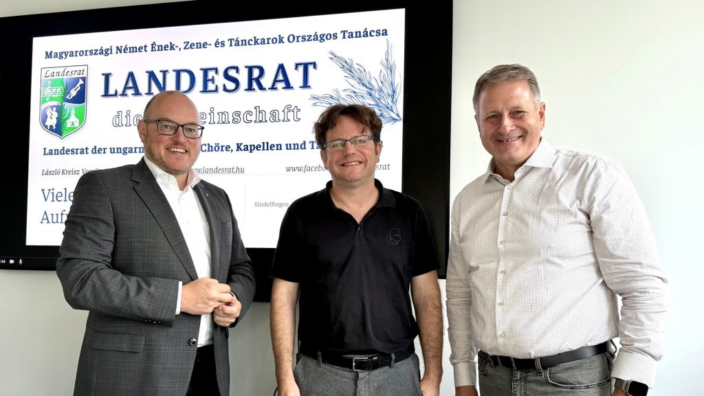 Im Nachgang zum 5. Donauschwäbischen Welttreffen, das in diesem Sommer in Ungarn und Serbien stattfand, trafen sich Mitte September Jürgen Harich, Bundesvorsitzender der Landsmannschaft der Donauschwaben und zugleich Präsident des Weltdachverbandes der Donauschwaben, László Kreisz, Vorsitzender des Landesrates der ungarndeutschen Chöre, Kapellen und Tanzgruppen, und Joschi Ament im Haus der Donauschwaben in Sindelfingen, um neue Wege für eine verstärkte Zusammenarbeit auszuloten und Ressourcen künftig noch gezielter gemeinsam nutzen zu können.